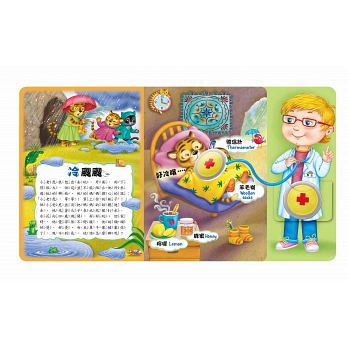 每個孩子都喜歡親切的醫生!醫生總是帶著快樂的笑臉,說著開心的話,面對他的病人。小朋友可以利用神奇的聽診器,加入醫生的治療行動:將聽診器放在病人的胸部或肚子上,聽聽對方說出身體的狀況。透過本書,讓我們明白醫生可以幫我們解決身體上的不舒服,你的孩子將不再害怕看醫生。